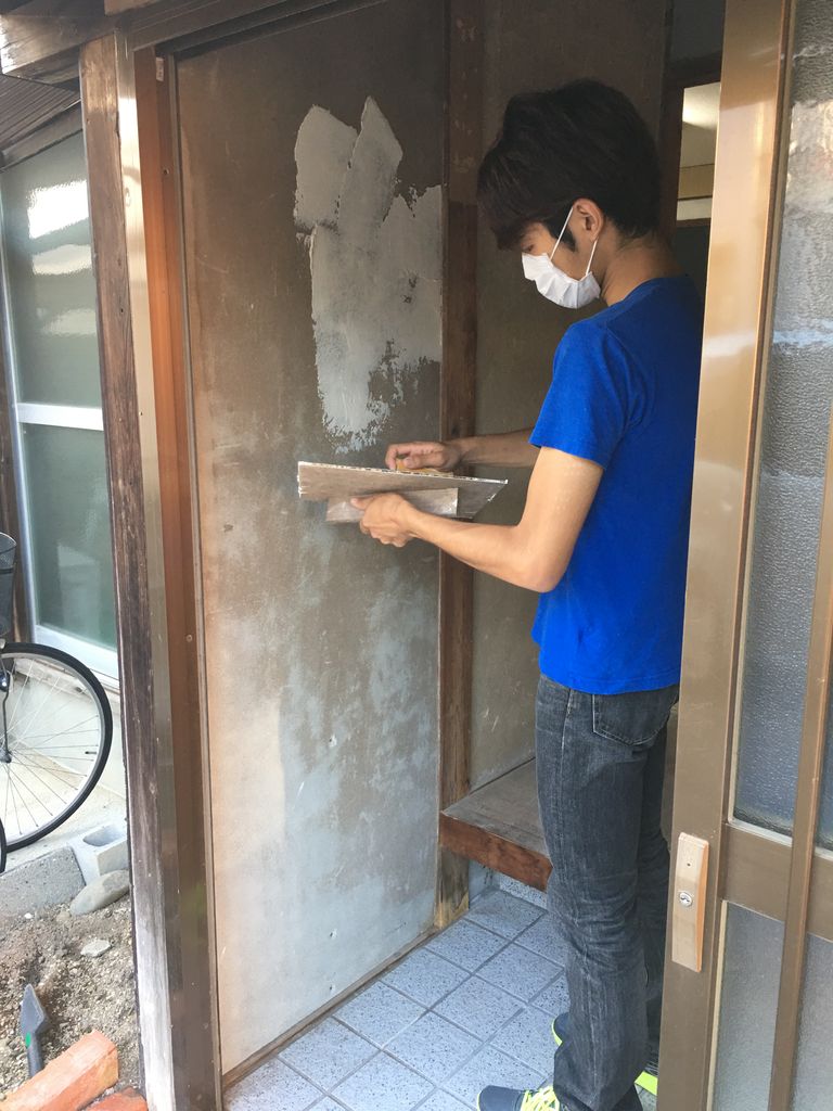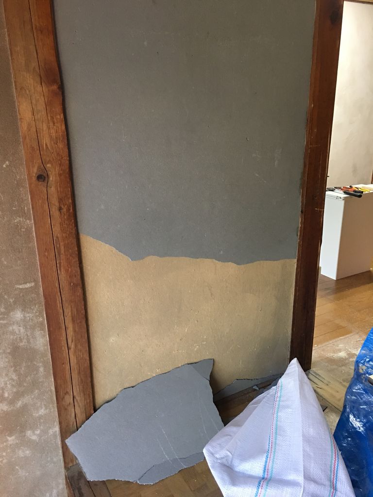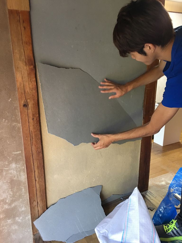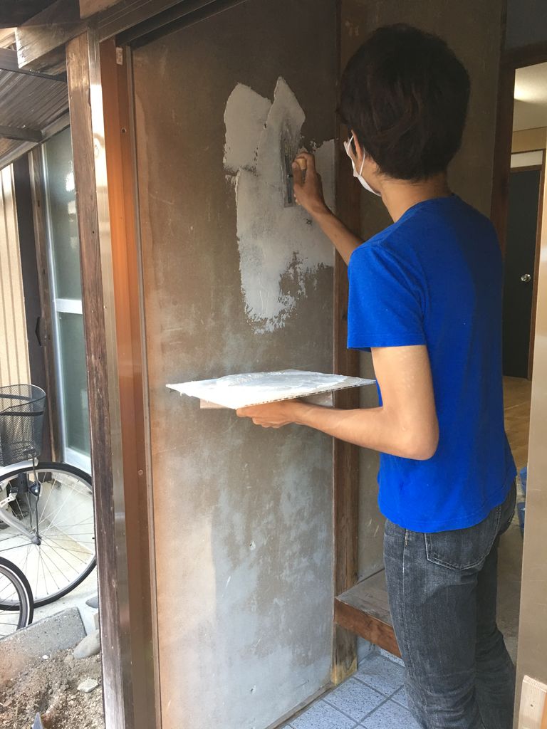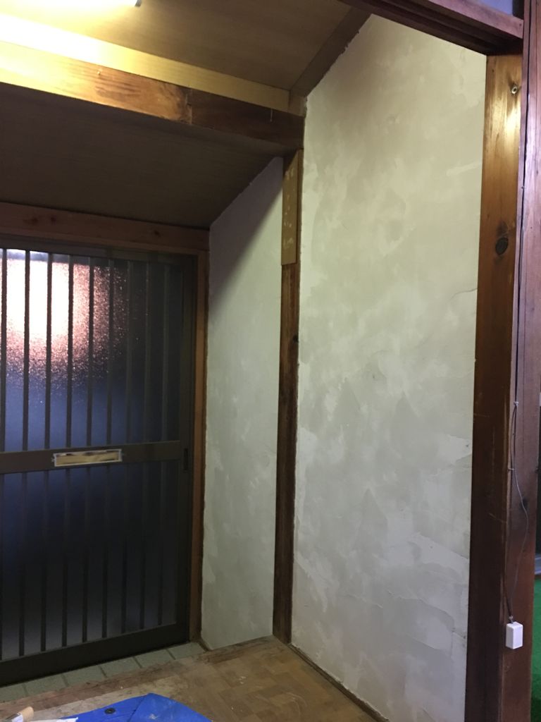 古い壁を取り除いてキレイに掃除したら珪藻土で塗っていきます。